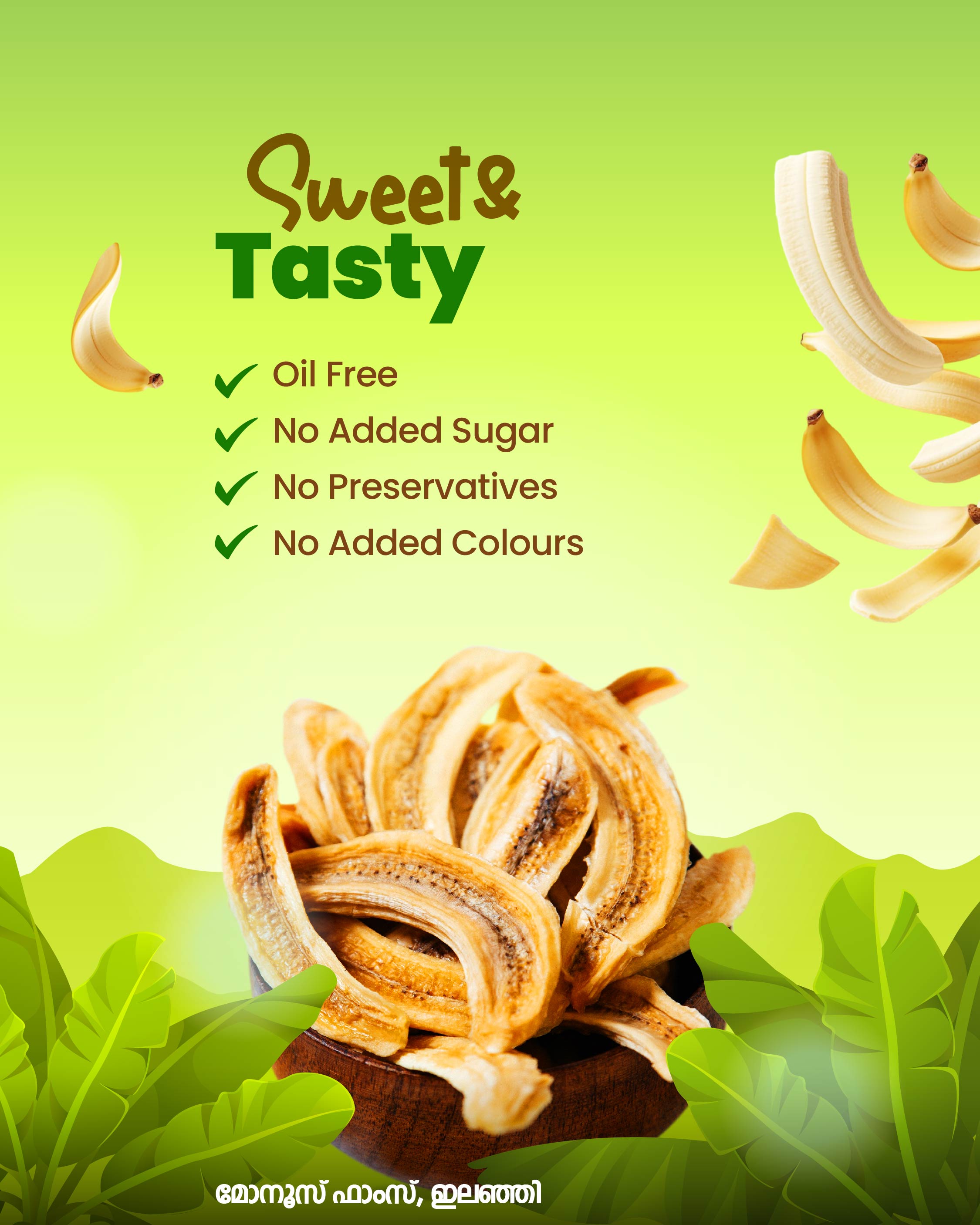 Behind every healthy bite of Monus Farm’s Oil-Free Banana Snacks lies the untold story of a farmer’s dedication, passion, and perseverance. From Ilanji, Kerala, Monus Farm stands as a symbol of purity and quality—growing every banana with care and turning it into nature’s finest snack.